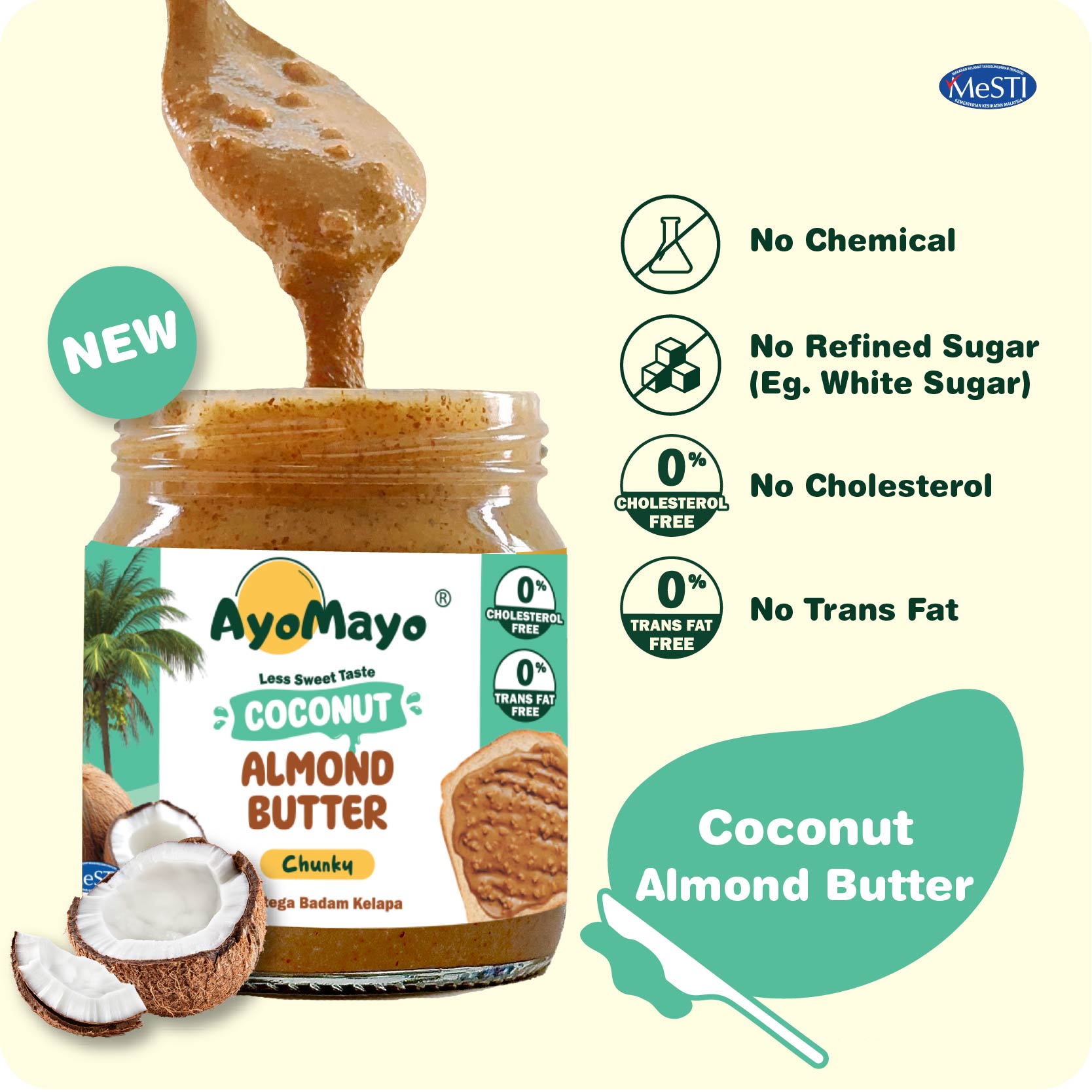 A refreshing twist for nut butter lovers who crave a taste of paradise in every spoonful! Made from premium roasted Californian almonds and real coconut, this refreshing spread offers a naturally sweet, aromatic flavor that’s both nutty and delightfully tropical.
